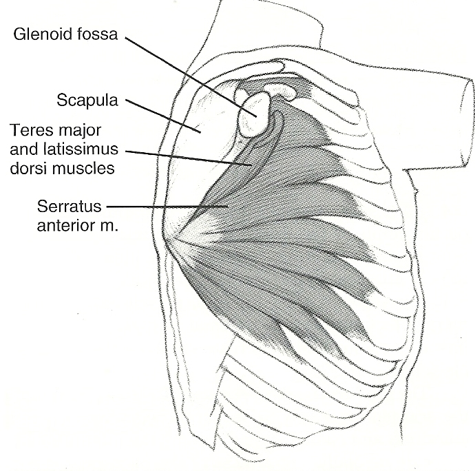 - Impaired control of the scapula by the serratus anterior is common, and results from the serratus being weak, long, short, or altered in the timing of its movement of the scapula. If the scapula is not correctly positioned during shoulder flexion or abduction the scapulohumeral muscles (rotator cuff) will not be able to maintain their optimal length and tension relationships.